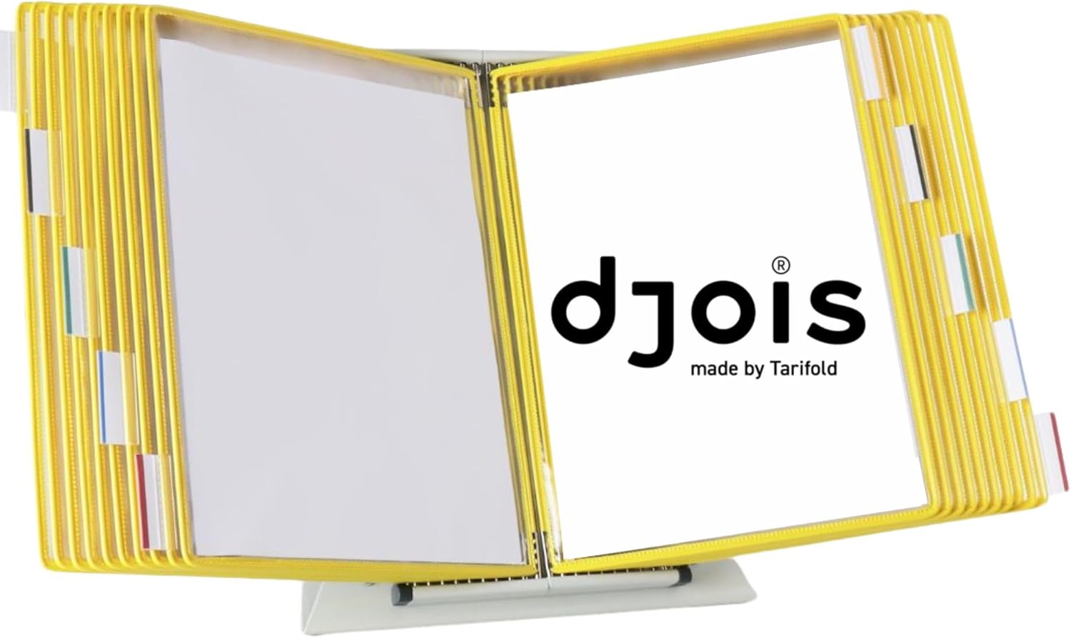 Djois by Tarifold, the unified brand of Tarifold, 3L Office, Jalema, and Atlanta, is part of the T3L group, a global leader in plastic foil transformation, printing, injection molding, and cardboard processing for over 60 years. With a keen understanding of the challenges faced in various professional settings, Djois by Tarifold has established itself as a leader in the field, offering a wide range of solutions designed for any workspace situation. From enhancing visual communication to optimizing organization, our products are specifically tailored to your needs. Whether it's taking baby steps or giant leaps, Djois by Tarifold is dedicated to supporting those with a drive, a project, a goal, or a passion. What if accessing your most important documents could be simplified, making your workspace more efficient and less cluttered? Imagine a workspace where every vital document is neatly displayed and within easy reach, eliminating the frantic search through piles of paper. Our Desktop Reference and Display Systems are crafted to make this vision a reality. Discover an extensive range of Desktop Reference Systems that address this need by providing a durable, easy-to-use platform for document display and organization, and find the one that is perfectly adapted to your work environment!