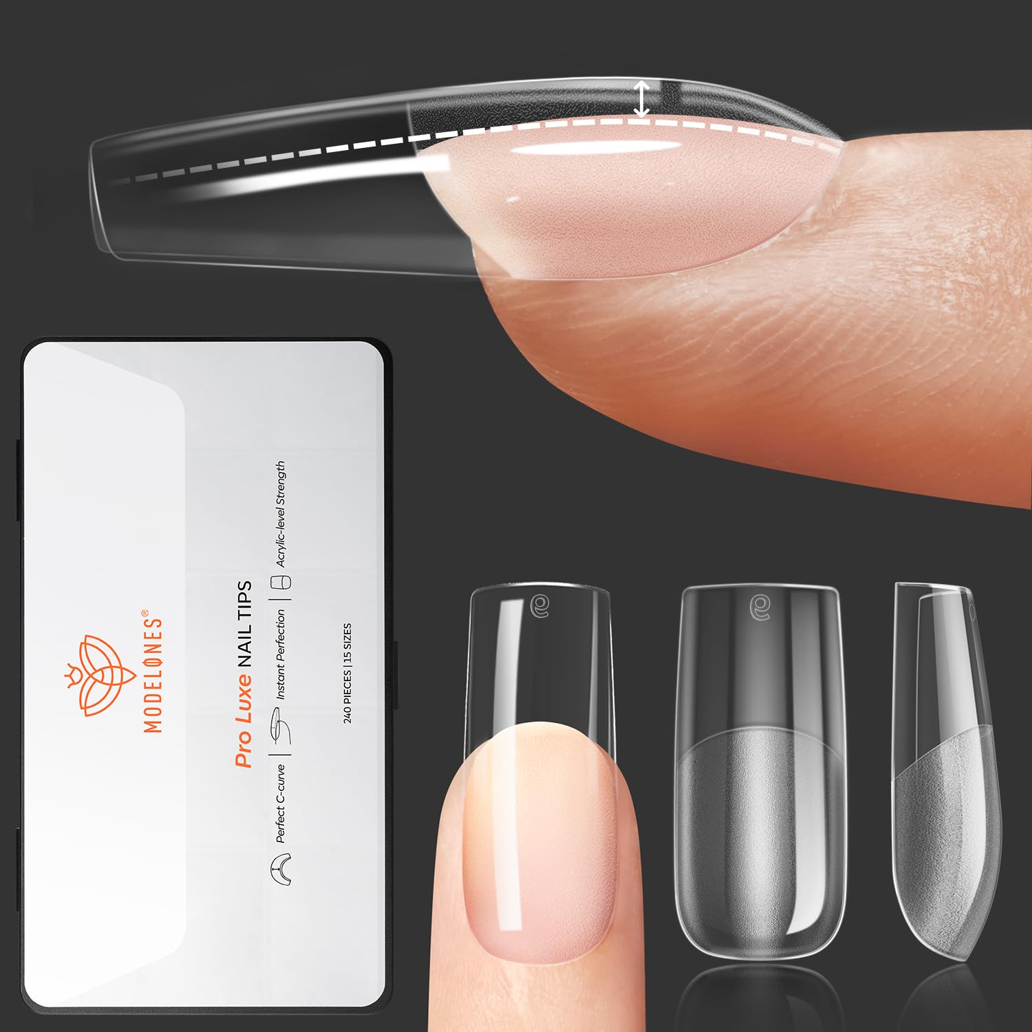 modelones Pro Luxe Instant Nail Apex Tips, Medium Square Extension Gel Tips Pre-building & Pre-etched Thicker Strength Acrylic Fake Nails Full Cover 15 Sizes